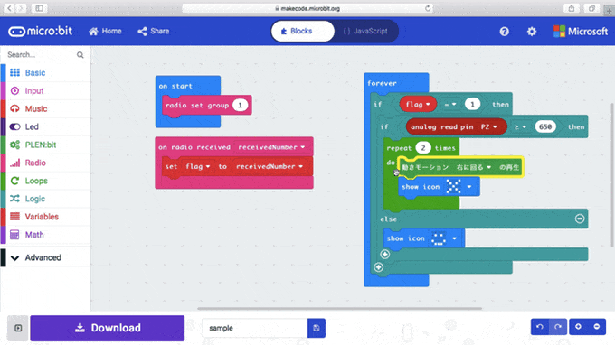 Возможно, вы помните предыдущую версию симпатичного робота PLEN2. «Мозг» нового робота PLEN: bit — учебный мини-компьютер BBC Micro:bit. Для программирования можно использовать редактор Java Script, который в «блочном» режиме открывается прямо в браузере, или Python.