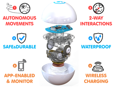 Изготовленный, согласно анонсу, из прочного поликарбоната со специальным, безопасным для собак покрытием, шарик GomiBall имеет диаметр водонепроницаемого корпуса 63 мм. Весит 160 гр. И скрывает внутри 3 — осевой акселометр, пару крошечных двигателей, модуль Bluetooth , обеспечивающий контакт с фирменным приложением для iOS/Android гаджетов.