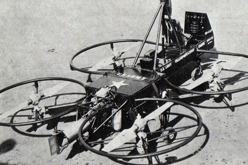 Более совершенный квадрокоптер изобрел Георгий Ботезат в 1956 году — новый вариант его машины уже управлялся с помощью несущих винтов. В качестве успешного примера можно также привести пилотируемый аппарат VZ-7 компании Curtiss-Wright, который в 1958 году прошел летные испытания, но был отвергнут Армией США из-за недостаточных эксплуатационных характеристик.